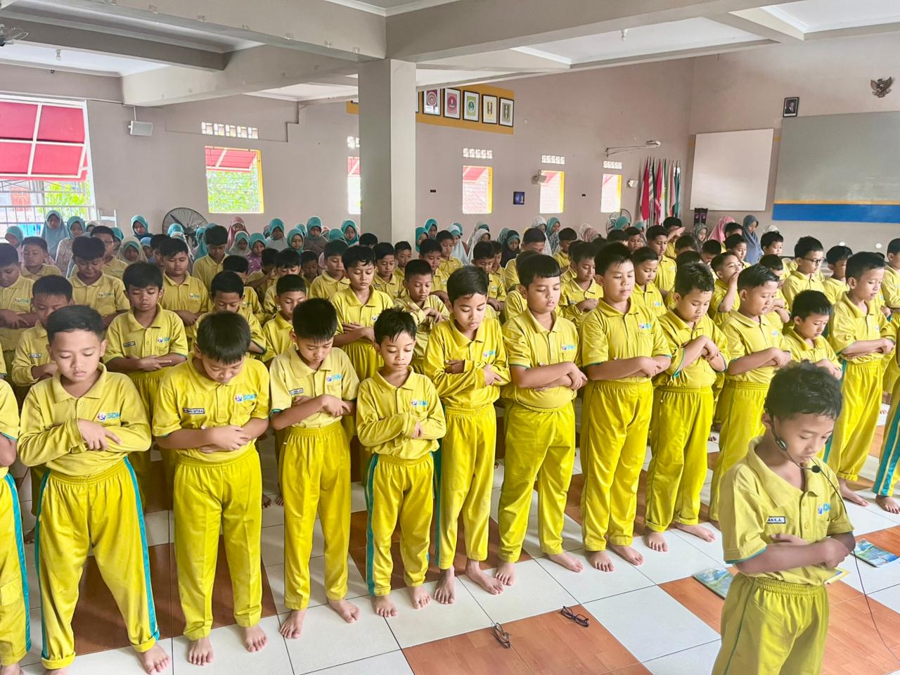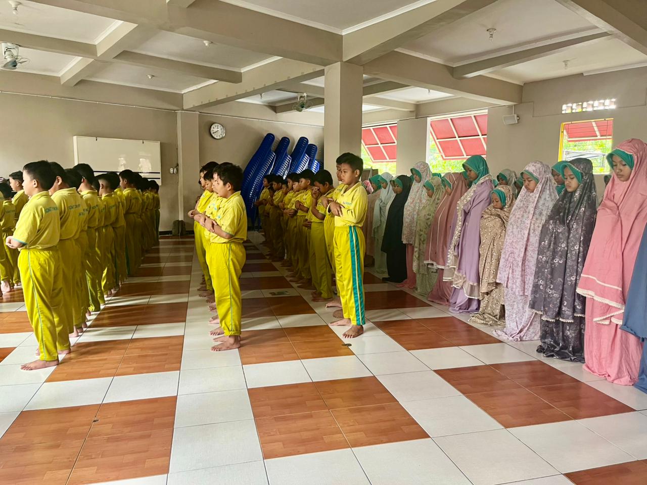 Setelah sesi hafalan selesai, para siswa diarahkan menuju aula sekolah untuk melaksanakan sholat dhuha secara berjamaah. Sholat dhuha dilaksanakan dengan tertib dan khusyuk, didampingi oleh wali kelas dan diikuti oleh seluruh siswa dari kelas 1 hingga kelas 6.