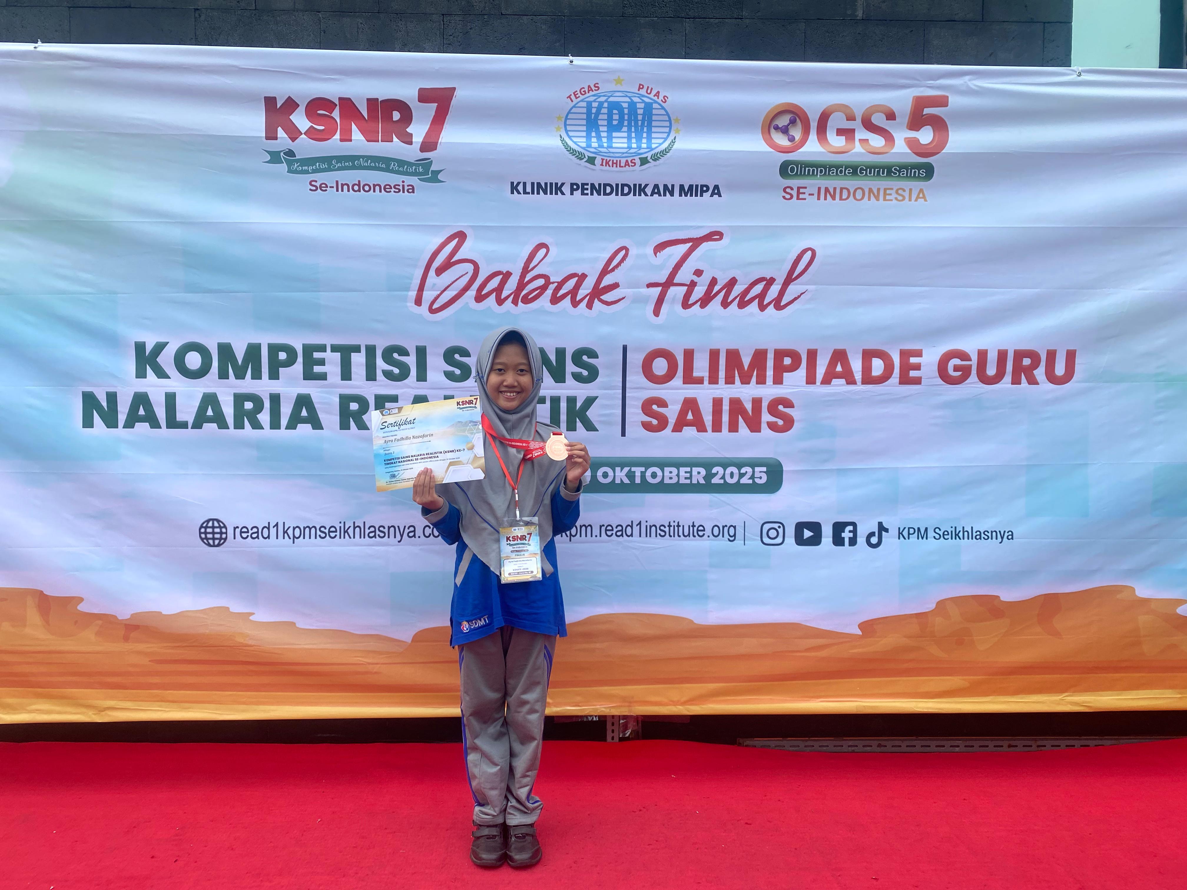 sdmtponorogo.com- Prestasi membanggakan kembali diraih oleh SD Muhammadiyah Tarbiyah (SDMT). Satu siswa dan satu guru sekolah tersebut berhasil membawa pulang medali dalam ajang bergengsi tingkat nasional yang digelar di Universitas Terbuka Convention Center (UTCC) Tangerang Selatan, Minggu (19/10/2025).